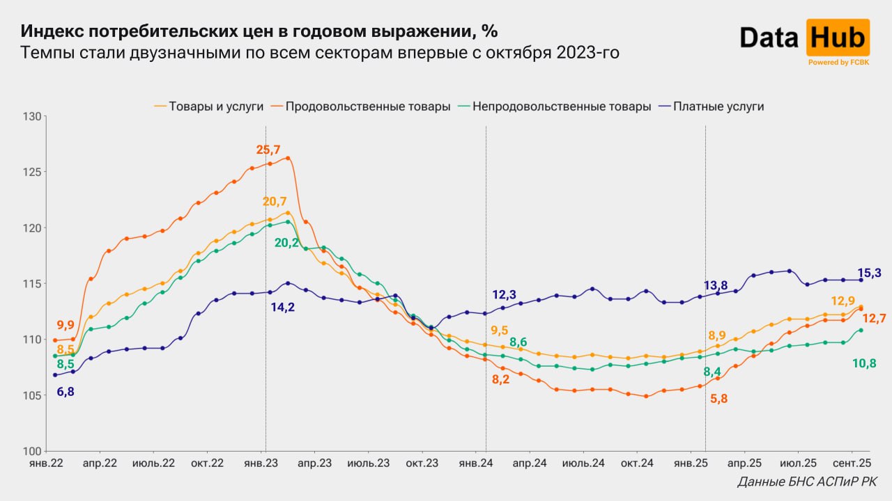 По итогам сентября темпы роста цен в непродовольственном сегменте составили 1,5% – это самый существенный показатель для любого месяца с ноября 2022 года, передает Arnapress.kz со ссылкой на Telegram-канал DATA HUB.