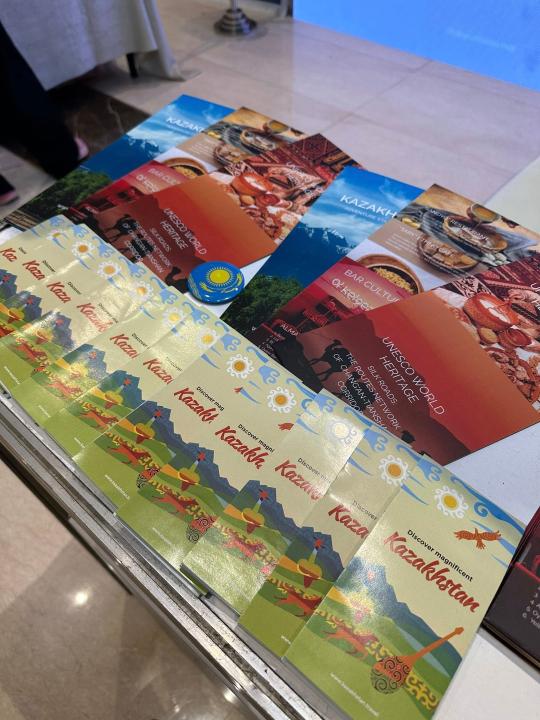 "В казахстанском павильоне были представлены информационные материалы о туристическом потенциале страны, включая буклеты и тематическую литературу. Гостям демонстрировались видеоролики о достопримечательностях, природе, исторических объектах и популярных туристических направлениях Казахстана.