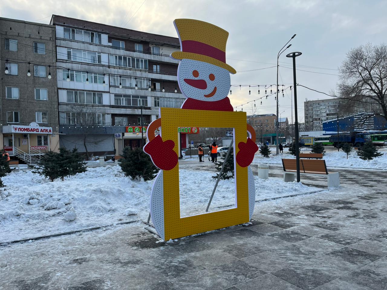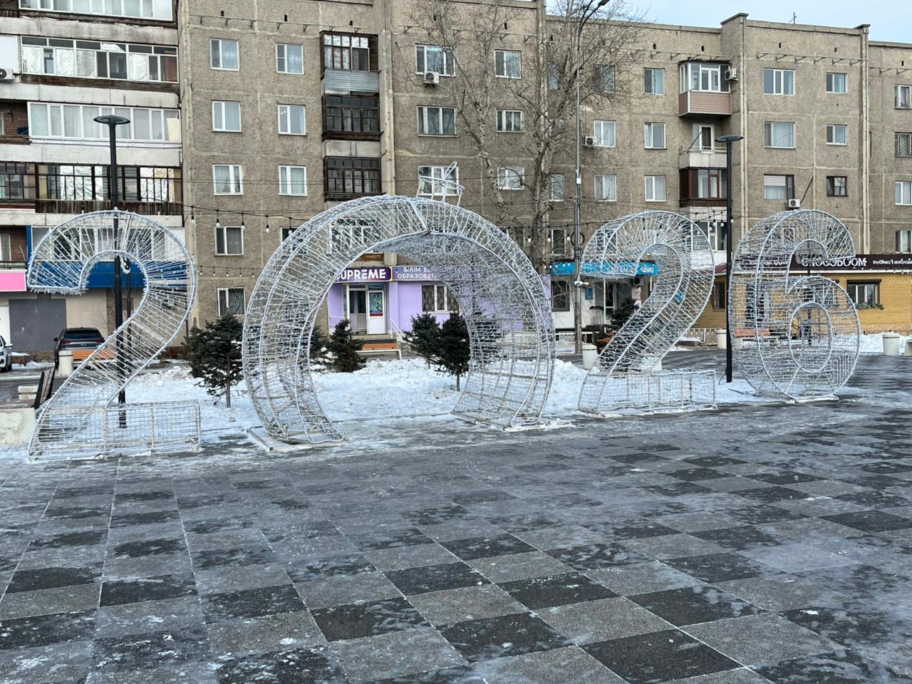 К празднику площадь Ауэзова украсили новогодними МАФами и фотозонами.