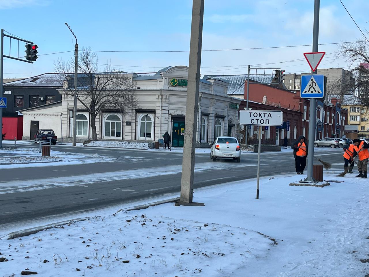 Смена сезона добавила дополнительных хлопот дворникам и коммунальным службам. С утра они уже чистят снег, мы застали работников коммунальной службы на одном из центральных перекрестков.