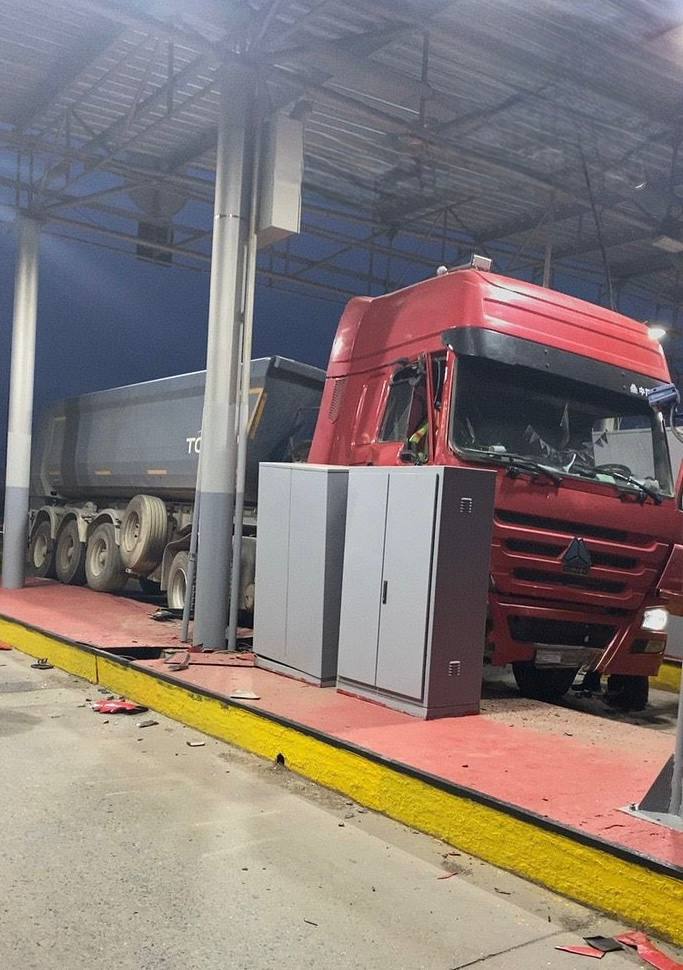 Грузовик протаранил пункт взимания платы на трассе в Акмолинской области