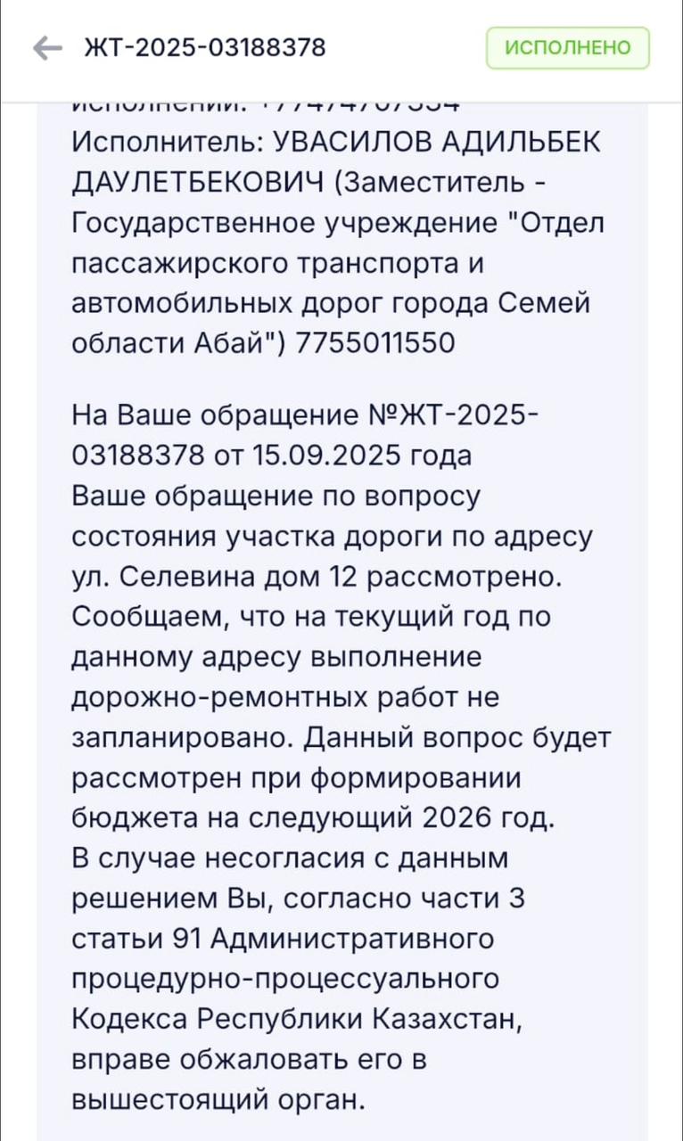 В редакцию Arnapress.kz пожаловались на отсутствие асфальта. Читатель просит обратить внимание на его район.