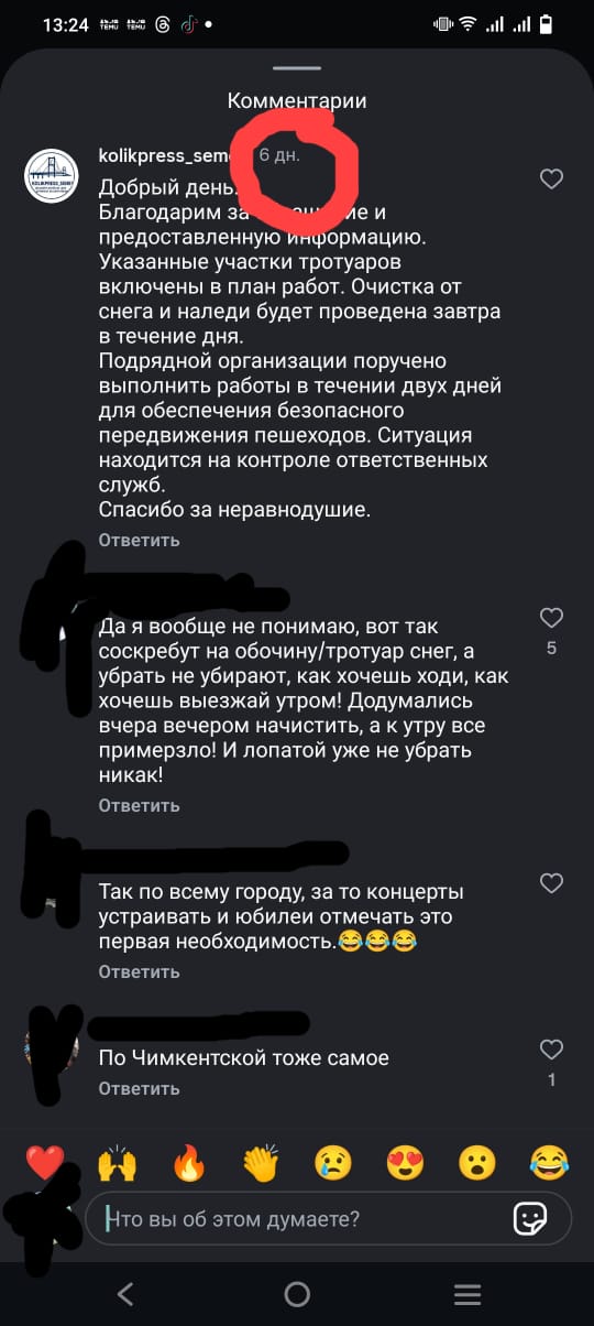 "Я обращался в редакцию насчет пешеходной дорожки. Сказали: "Завтра очистим", так и осталось. Кашаубаева-Кустанайская – так и не убрали. А под постом было написано, что у них в плане была очистка", – говорит житель города.
